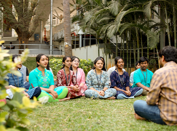 At RV University, student life is a well-rounded blend of academic stimulation, creative exploration, active wellbeing and communal connection. Students have access to outstanding academic facilities, a wide range of interdisciplinary courses, peers from across India and the full residential university experience. From student organisations and cultural clubs to sports facilities, food courts, wellness centres and performance spaces – RV University offers a campus life that is engaging, inclusive and deeply student-centred.